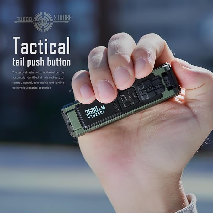[عملکرد بالا] این چراغ قوه EDC از LED های Cree XHP50.3 HI و نور UV استفاده می‌کند، دارای ۶ سطح روشنایی با حداکثر خروجی ۳۶۰۰ لومن و برد پرتو ۴۲۸ متر است.