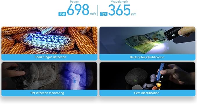 [چراغ قوه EDC با نور UV] طول موج ۳۶۵ نانومتر و نور UV با توان ۶۹۸ میلی‌وات به تشخیص قارچ‌های غذایی که با چشم غیرمسلح قابل مشاهده نیستند کمک می‌کند و برای بررسی مواد غذایی شما ایده‌آل است.