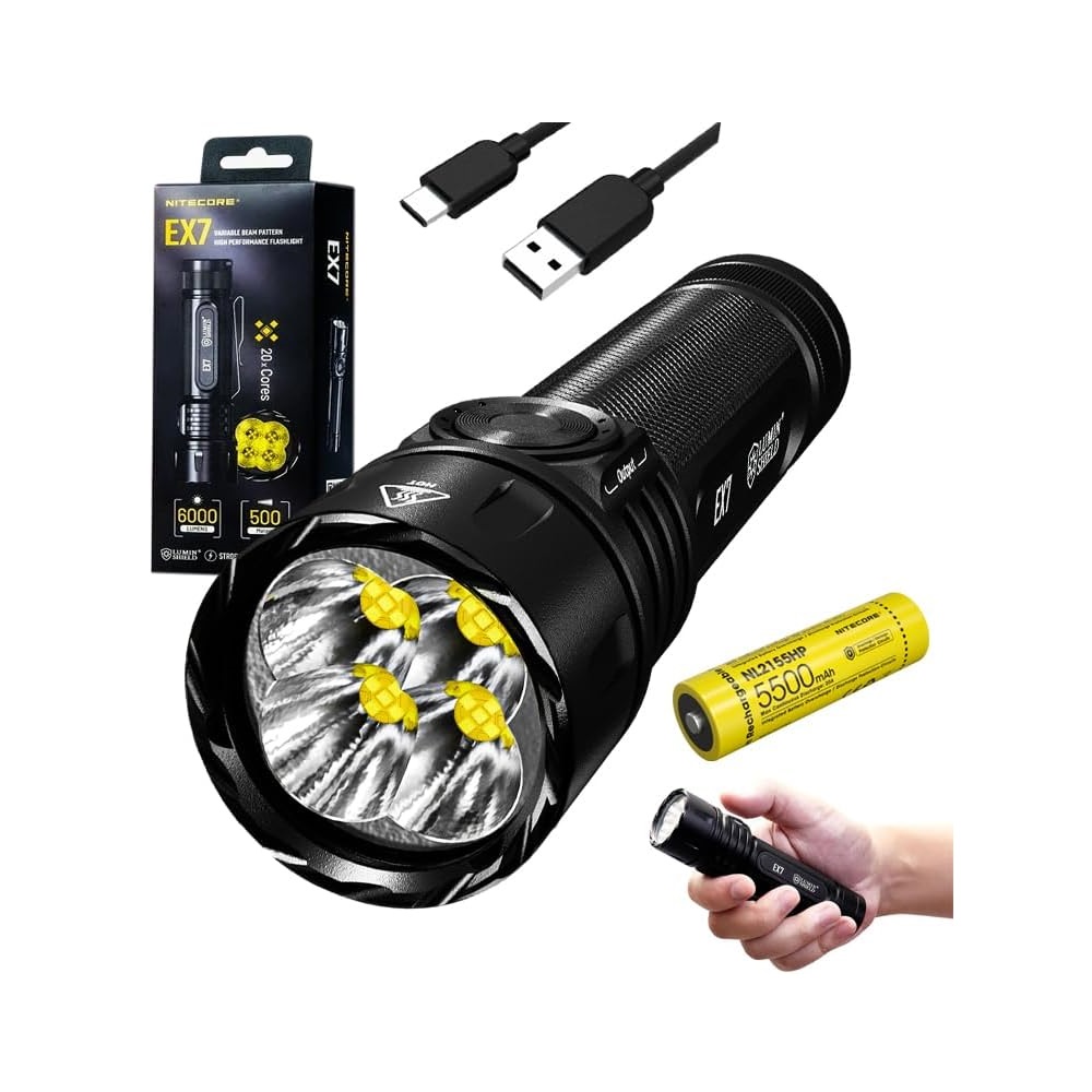 Nitecore EX7 یک چراغ قوه واقعاً همه کاره است که به شما کمک میکند هر کاری را که در ذهن دارید انجام دهید! دارای ۲۰ عدد ال ای دی جدید از سری NITELABمیباشد ، EX7توانایی پرتاب نور نقطهای، و سیلآسا و ترکیبی را تا ۶۰۰۰ لومن و۵۰۰ مترنور در کف دست شما فراهم میکند. همچنین به حالت چشمکزن با فرکانس تصادفی و حالت Lumin Shield با حداکثر خروجی برای استفاده در مواقع اضطراری مجهز است. باتری میتواند بیش از ۲۳ روز مستقیم با Ultralow دوام بیاورد تا شما را از قطع برق نجات دهد و میتوان آن را به راحتی در داخل EX7 از طریق پورت USB-C یکپارچه چراغ قوه را شارژ کرد.