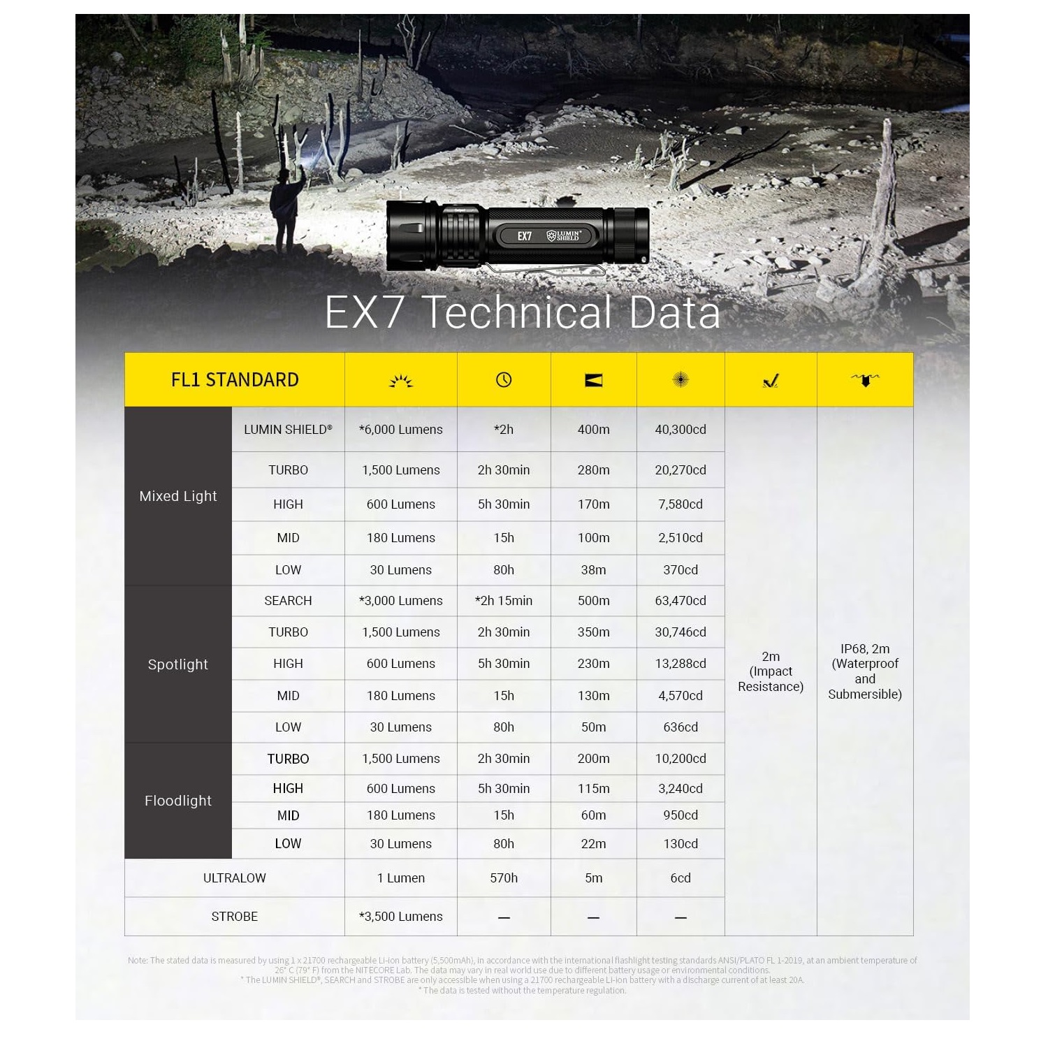 جدول مشخصات فنی چراغ قوه Nitecore EX7